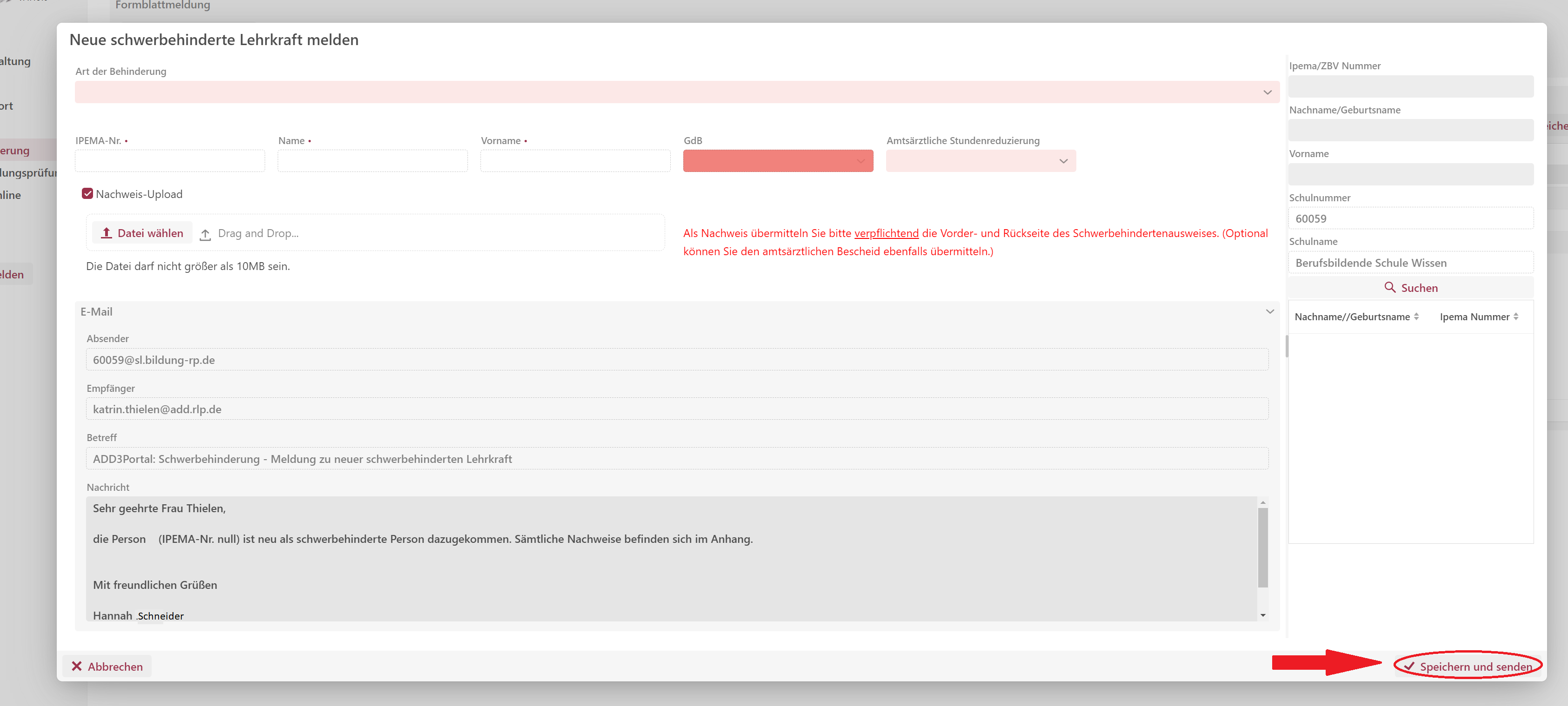 Wenn alle Daten eingetragen wurden, bestätigen Sie bitte die Eingabe mit dem Button „Speichern und senden“.