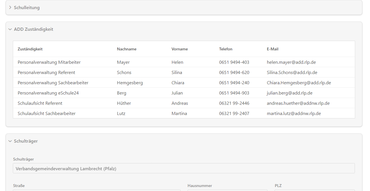 Dort finden Sie nun ein Feld „ADD Zuständigkeit“, das sich ausklappen lässt. Dort finden Sie die Zuständigkeiten für Ihre Schule.
